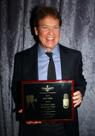 LARadio Rewind: January 30, 2010. At a luncheon at Vitello’s Restaurant in Studio City, Art Laboe is honored by his peers with the LARadio Lifetime Achievement Award. (Presented by Don Barrett) Born Arthur Egnoian in 1925 in Salt Lake City, he began his career at age 13 by assembling a ham radio and playing records for his local neighborhood. In 1943 he landed a one-hour late-night show at KSAN-San Francisco and changed his name to Laboe after the station’s secretary. He worked in radio in Palm Springs and Reno and was briefly at KRKD. He joined KXLA in 1949, then worked at KGFJ, KFWB and KPOP in the 1950s. For ten years, Laboe broadcast from Scrivener’s Drive-In at Sunset and Cahuenga. Because so many fans requested oldies, Laboe coined the term “Oldies But Goodies” and launched Original Sound Records, which has released 15 Oldies But Goodies compilation albums. From 1955 to 1961, Laboe staged dances at El Monte Legion Stadium. Since 1960 he has worked at KRLA, KDAY, KPPC, XEPRS, KRLA, KRTH, KFI and KCMG/KHHT. Laboe hosts two syndicated programs, Art Laboe Connection and Sunday Special. He received a star on the Hollywood Walk Of Fame in 1981 and was inducted into the Radio Hall Of Fame in 2012. Laboe’s favorite song: Since I Don't Have You by the Skyliners. (LARadio Rewind is meticulously prepared by Steve Thompson) |