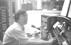 Sanders, Laurie: KOST, 1985-91; KXEZ, 1991-92. Laurie hosts an evening Love Songs-theme show at KOIT-San Francisco.