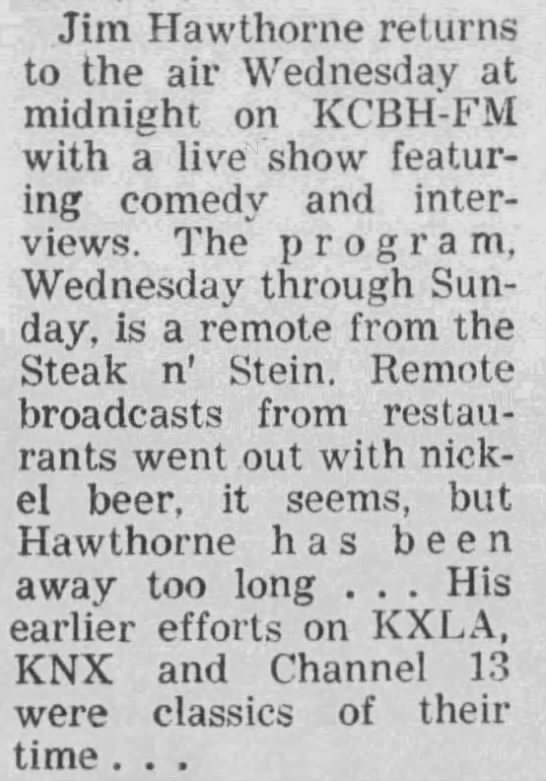KHJ and KMPC/fm, and KLIT. Rick is antsy to get