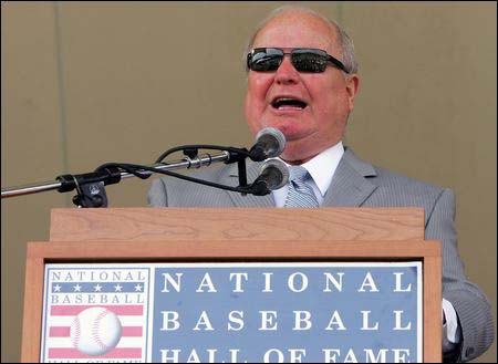 While in the Southland he called the Angels action with Dick Enberg and Don Drysdale. He also broadcast UCLA football and basketball. Niehaus received the Ford Frick Award at the Hall of Fame induction ceremony in 2008, "Dave has truly been the heart and soul of this franchise since its inception in 1977,” said Howard Lincoln, the Mariners ceo and Chuck Armstrong, Mariners present. “Since calling Diego Segul's first-pitch strike on Opening Night in the Kingdome some 34 years ago, Dave's voice has been the constant with the franchise. He truly was the fans' connection to every game; to wins and losses; to great plays and heartbreaking defeats; to Hall of Famers and journeymen. With the exception of his love for his wife, Marilyn, his children and grandchildren, there was nothing Dave liked more than the game of baseball and to be at the ballpark. He was the voice of spring and summer in the Northwest."